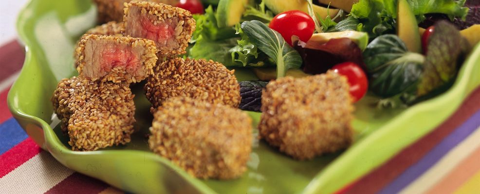 Bocconcini di manzo al sesamo con insalata | Sale&Pepe